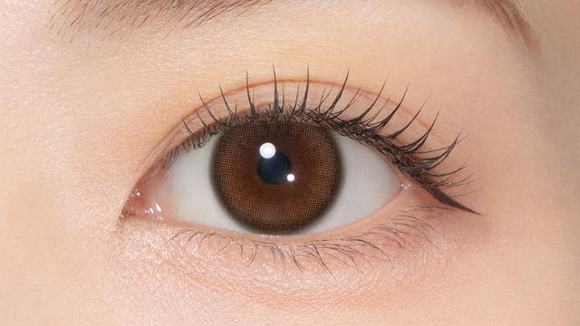 透明感のあるウォームブラウンと凛とした細フチで、きちんと感のある印象的な瞳へ